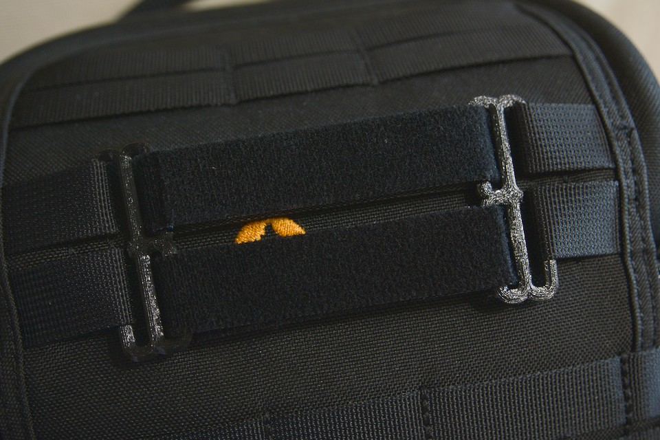 Using of the MOLLE system in something not millitary related still gives plenty of benefits. And these pairs of MOLLE connectors on either side of the logo will serve their purpose... but for now only aesthetically.